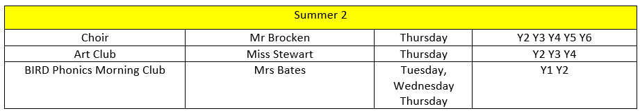 All after-school clubs begin straight after school at 3:30pm and run until 4.15pm. Please collect your child from the school playground at their usual door at 4.15pm.