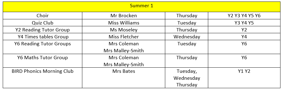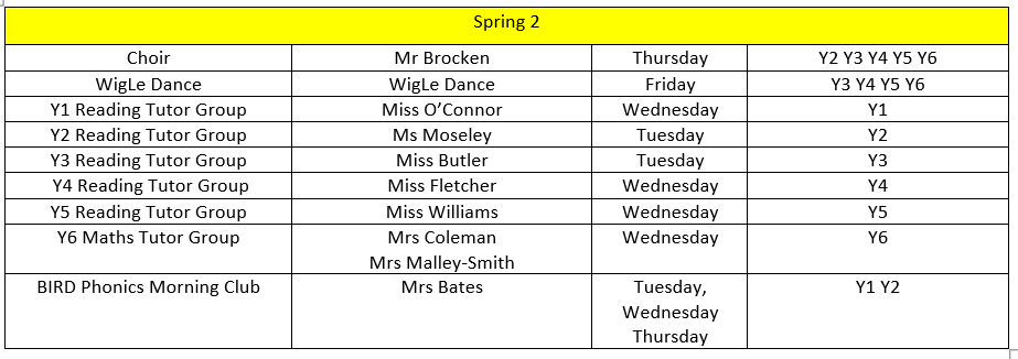 As well as a variety of after-school clubs, school also offers a wide range of School-Led Tutoring clubs that also run after school or during the school day. These cover a wide range of subjects including Phonics, Reading, Maths, times tables, Writing and SPAG.